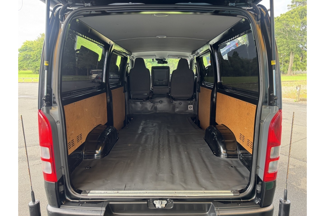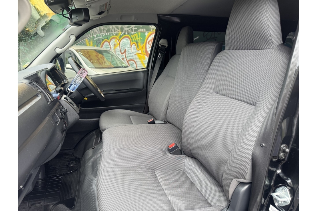 Powered by a 2.8 litre turbo diesel engine paired with a smooth automatic transmission with tiptronic, this Hiace delivers strong torque, reliability, and excellent real world efficiency. It is easy to drive around town or on the open road. With sliding doors on both sides, loading and unloading is simple and efficient even in tight spaces.