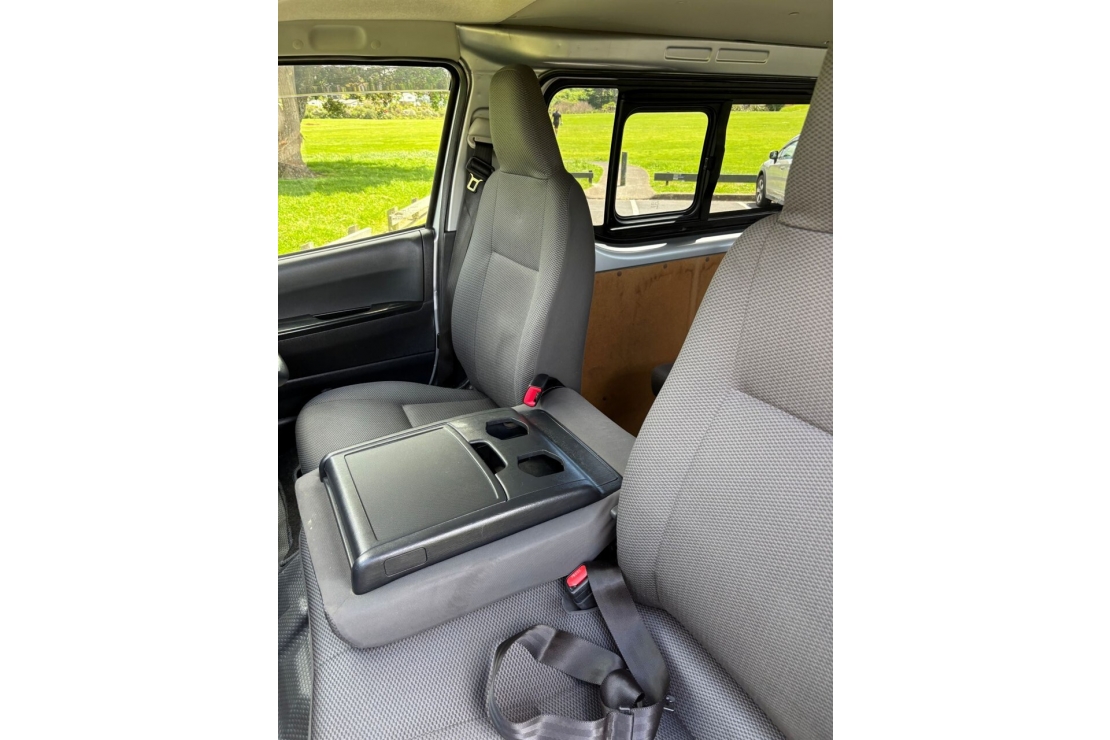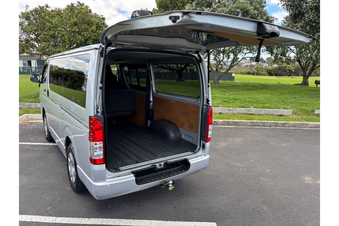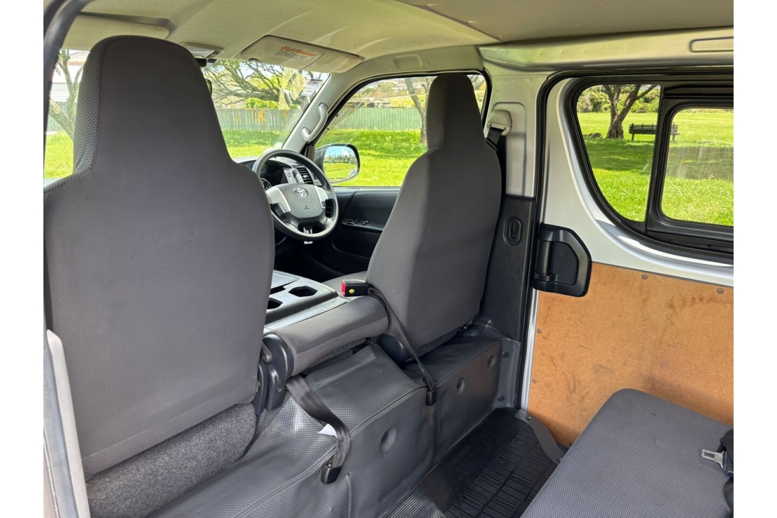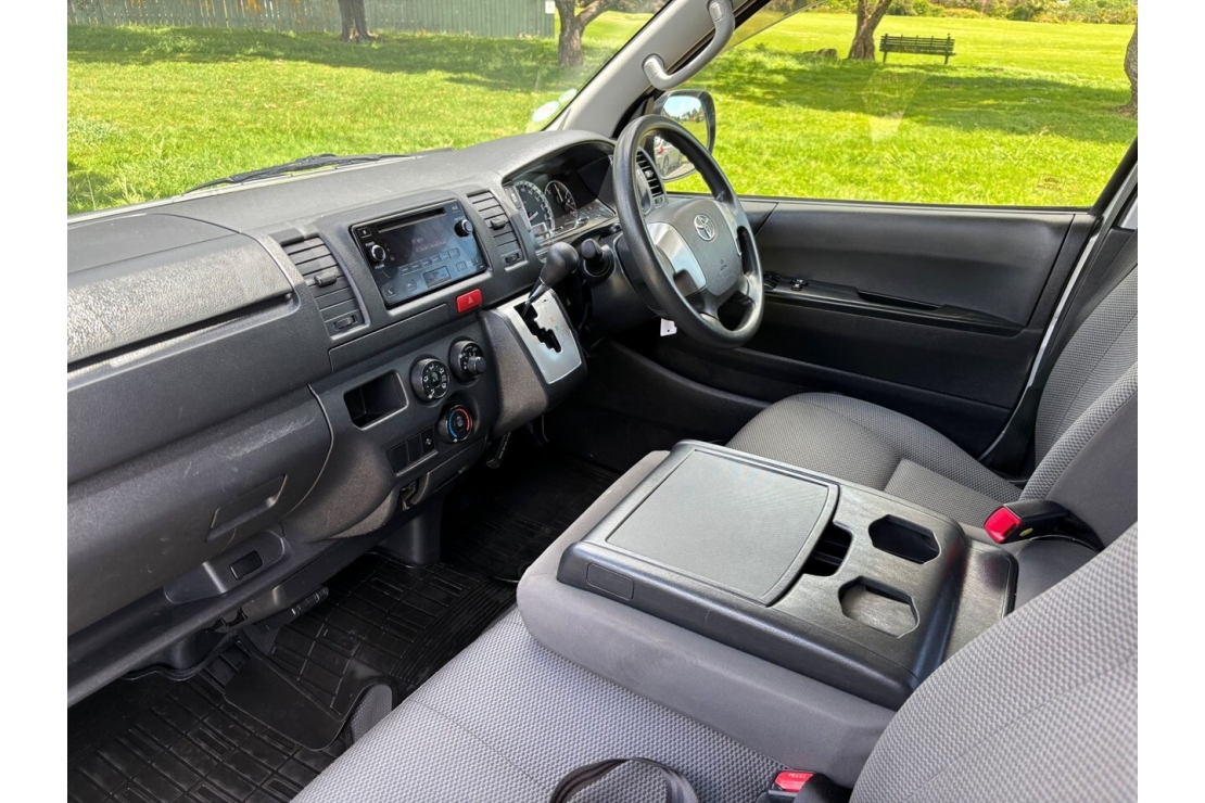 A super tidy and hard to find 2018 Toyota Hiace Regius Ace offering reliable Toyota turbo diesel power and practical versatility. Finished in silver with tinted windows and monsoon shields, this van presents extremely well and is ideal for work or family use.