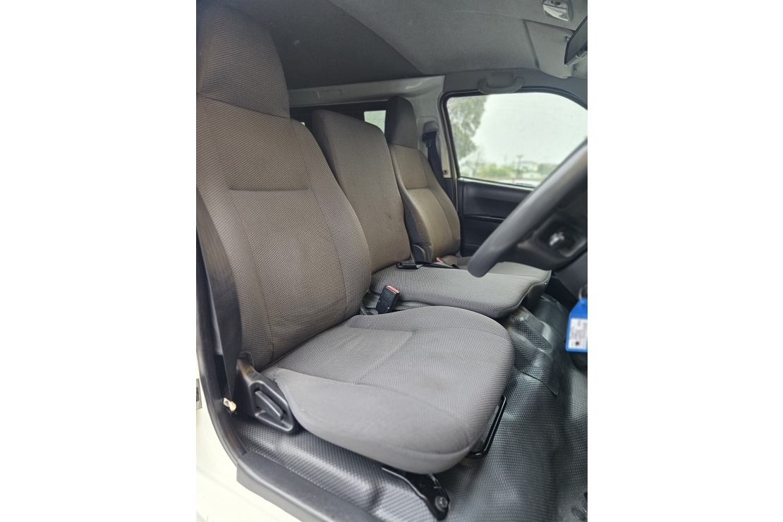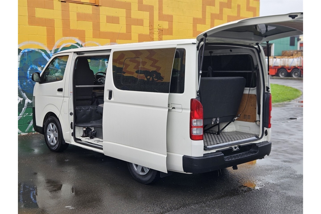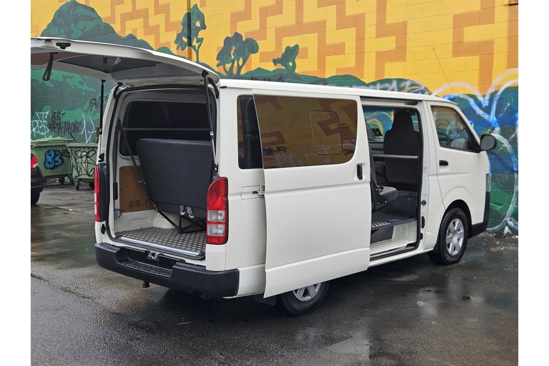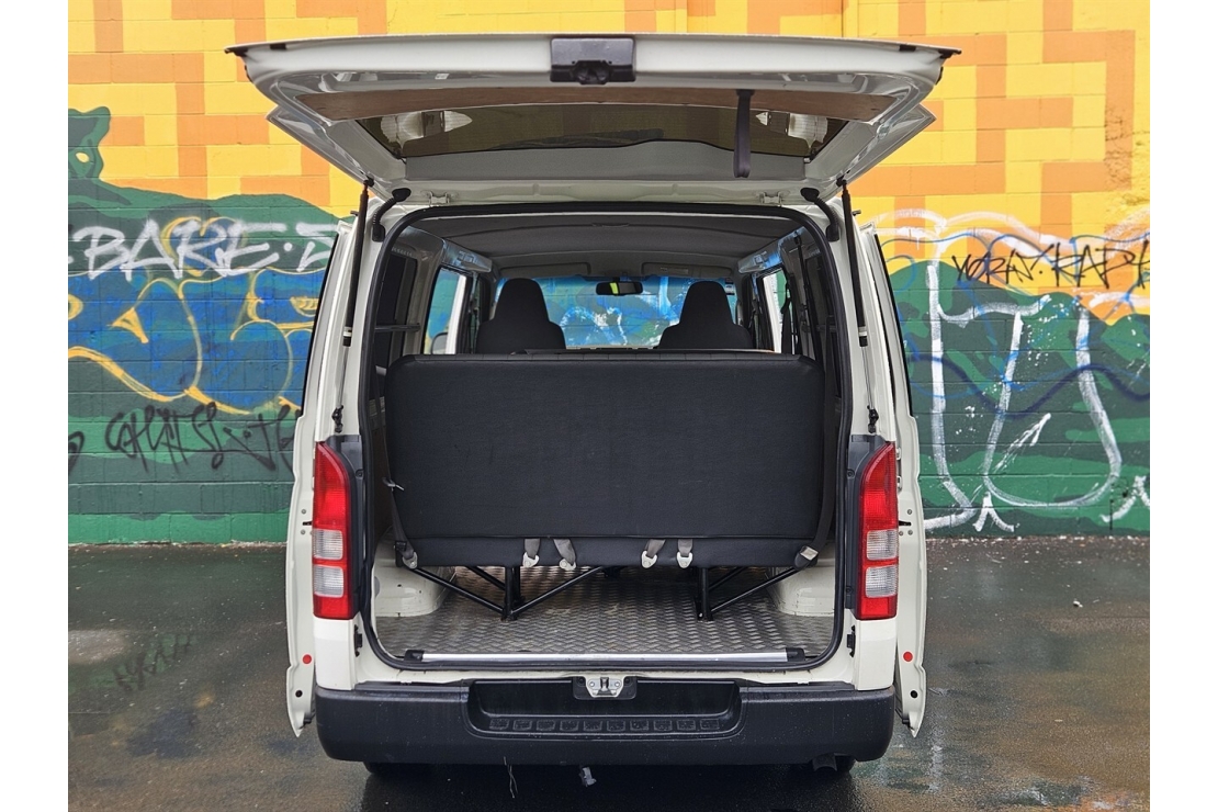 Finished in classic white, this Hiace features dual sliding doors for easy access from either side, making passenger entry and exit hassle-free. Inside, theres seating for eleven in comfort, with a well-designed layout for both passengers and luggage. Recently serviced with a brand-new WOF and a well-maintained history including the timing chain replaced at 63,000km, this van is ready to go to work.