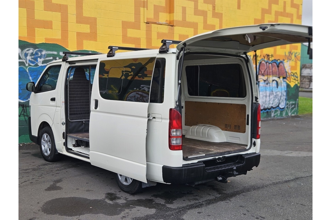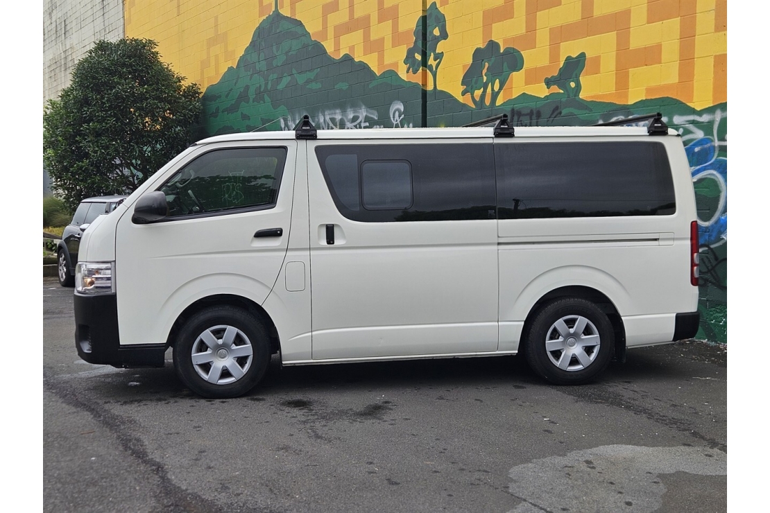 Finished in white, this Hiace presents neatly and is fitted with tinted windows, roof racks, tow bar, and dual rear sliding doors, making access easy from either side and adding excellent load carrying versatility. Inside, it features a stereo system, multi function steering wheel, and air condit... Read more