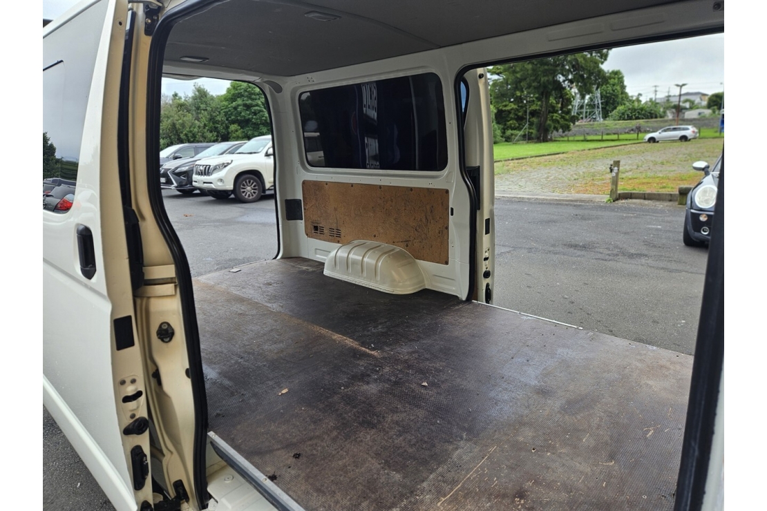Finished in white, this Hiace presents neatly and is fitted with tinted windows, roof racks, tow bar, and dual rear sliding doors, making access easy from either side and adding excellent load carrying versatility. Inside, it features a stereo system, multi function steering wheel, and air conditioning for everyday comfort.