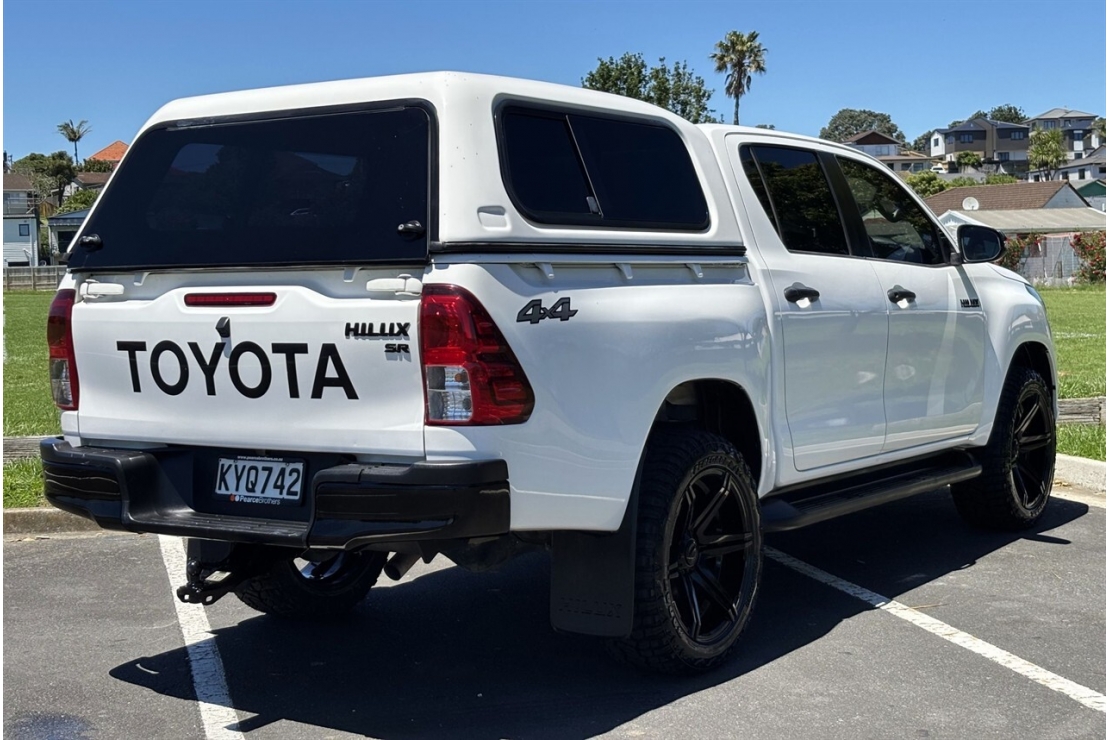 This 2017 Toyota Hilux SR is a tough reliable NZ New double cab that ticks every box. Finished in White with a sharp custom blackout and sitting on brand new 20 inch alloys and tyres this Hilux has real presence on and off the road.