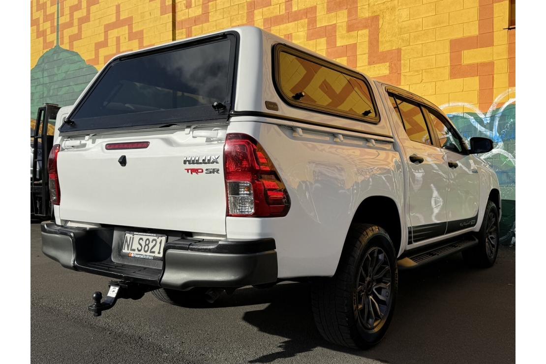 This Hilux SR TRD is built for those who want strength, style, and capability all in one package. Powered by the proven 2.8L turbo diesel engine with automatic transmission and dual range 4WD, it is a beast on the road and off it. Finished in crisp white with a full blackout treatment and sitting on 18" alloys, it delivers serious presence.