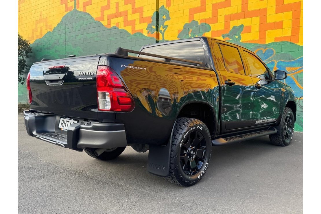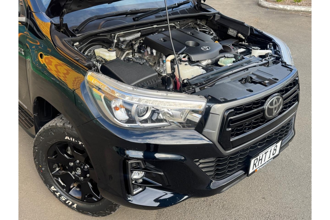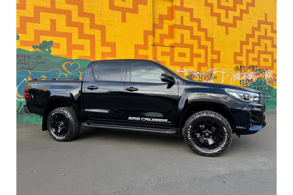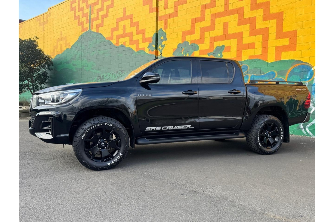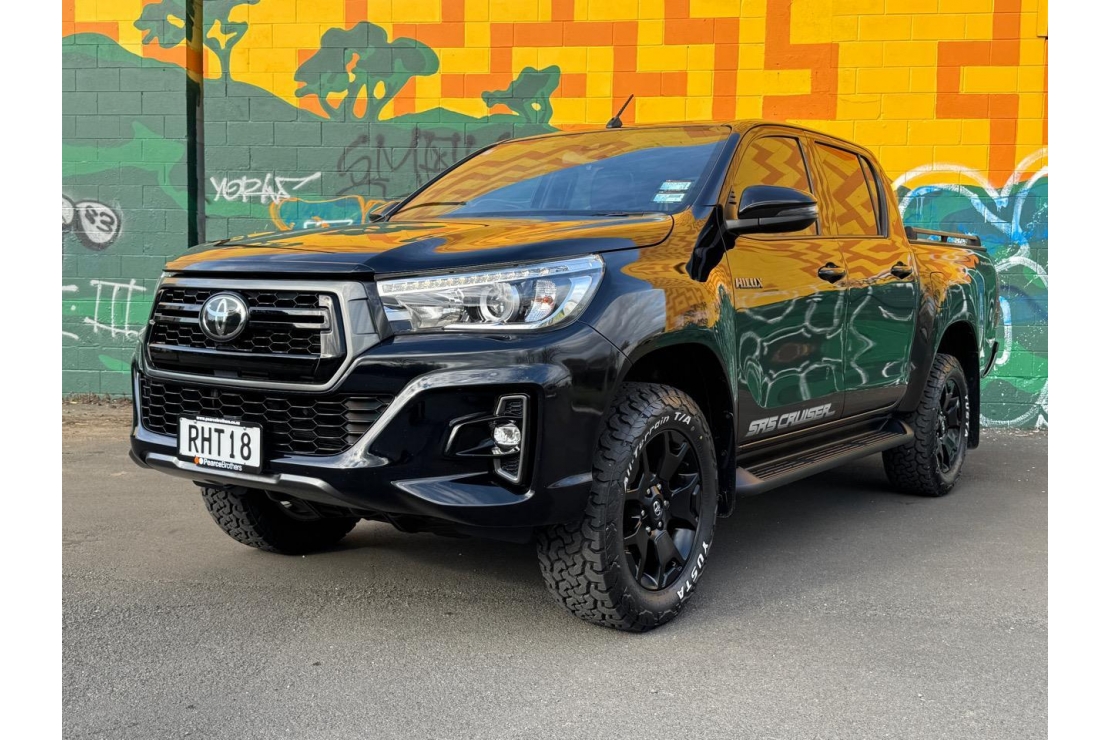A tough, stylish, and high-spec ute, this Hilux SR5 Cruiser is NZ New and presented in immaculate condition. Finished in sleek black with a full blackout treatment and sitting on 18" alloys, it has real presence while delivering Toyotas legendary reliability and durability. Powered by the proven 2.8L turbo diesel engine.