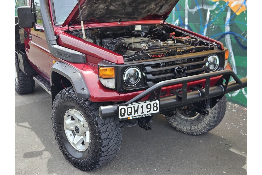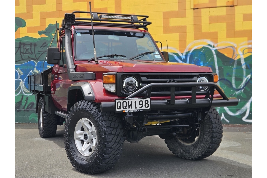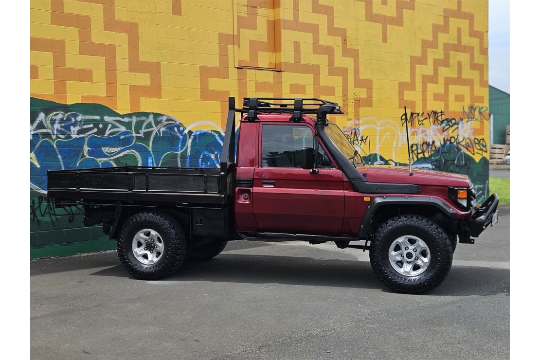 Finished in classic red, this two-door Land Cruiser is fitted for serious use with a steel flat deck with folding sides, front bull bar, snorkel, and LED light ... Read more