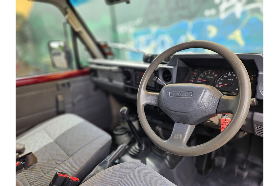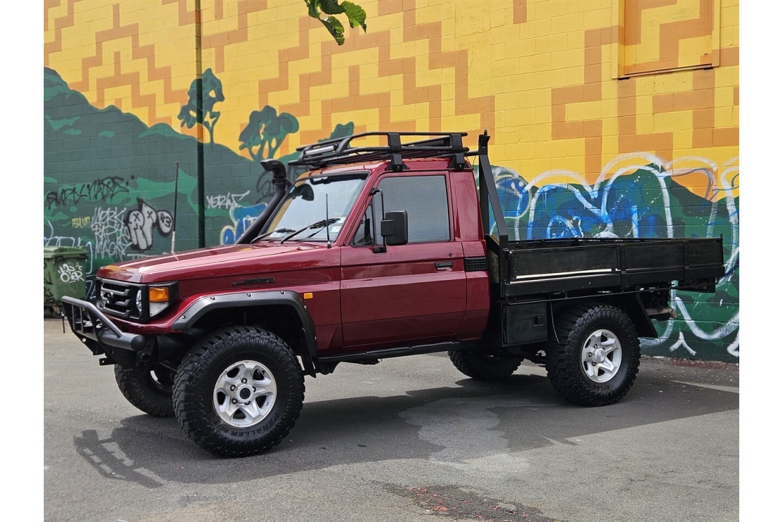 Finished in classic red, this two-door Land Cruiser is fitted for serious use with a steel flat deck with folding sides, front bull bar, snorkel, and LED light ... Read more