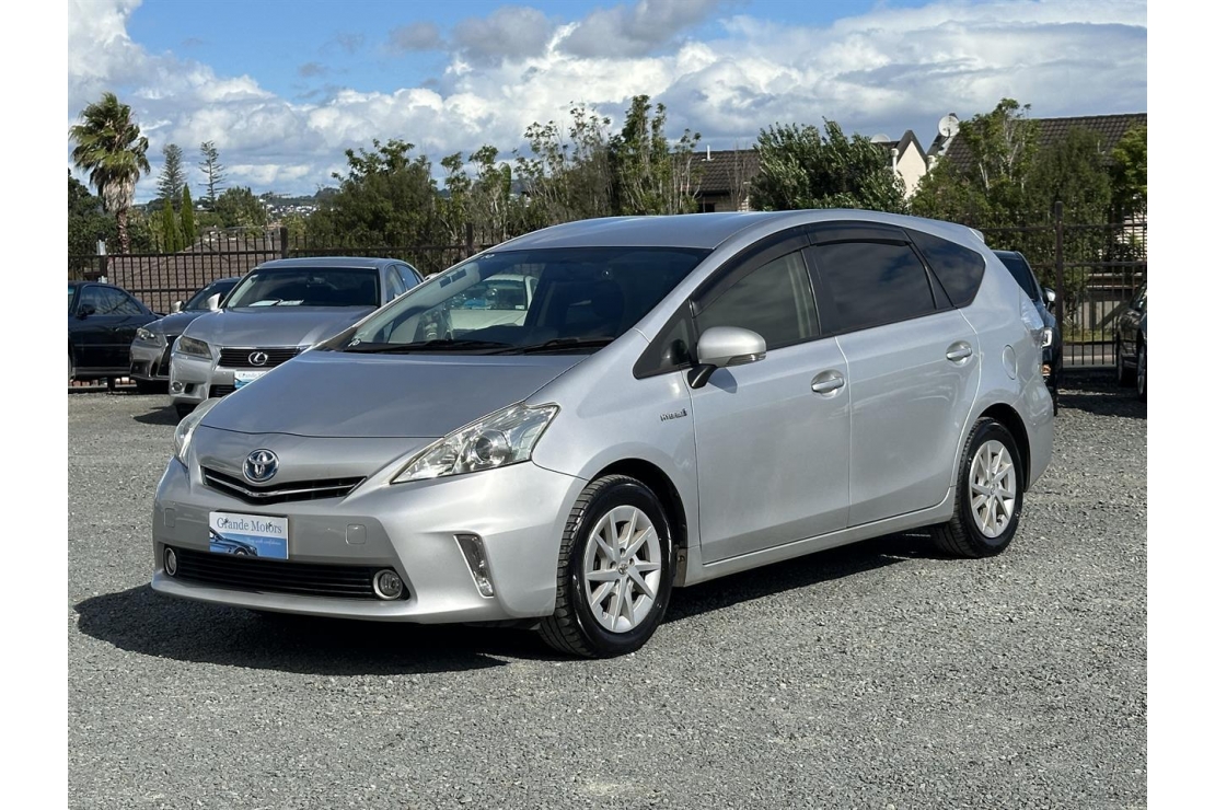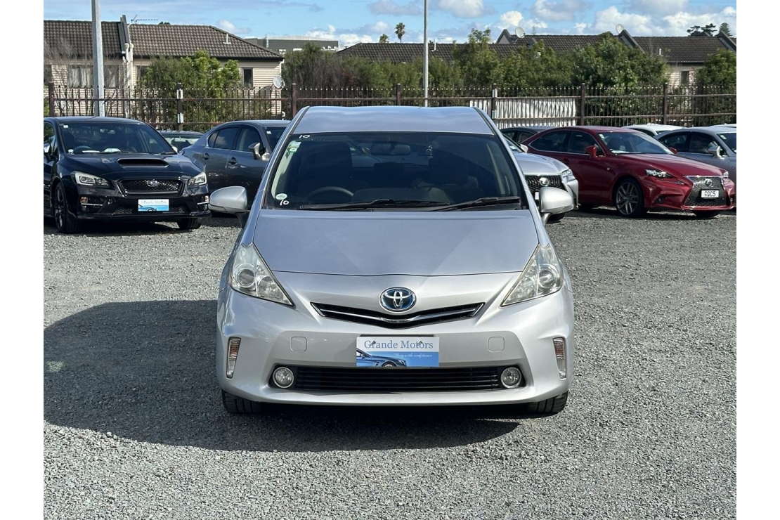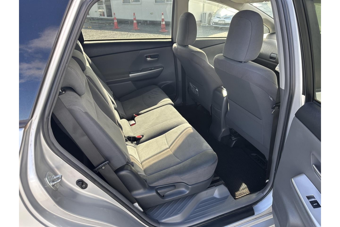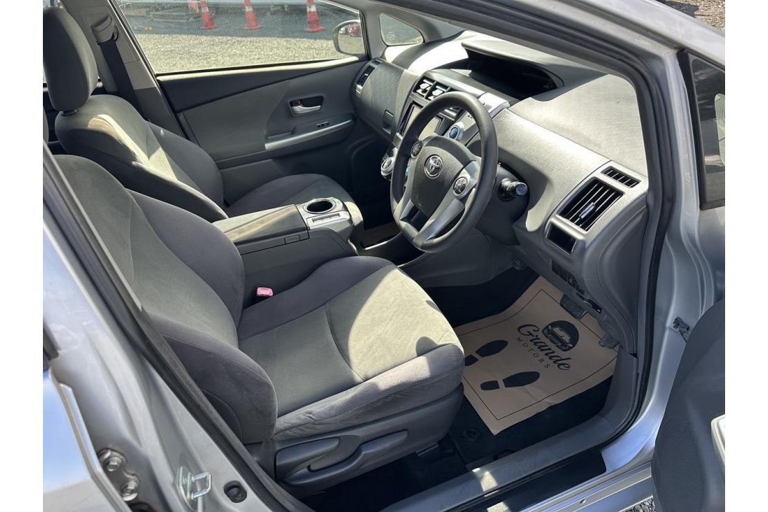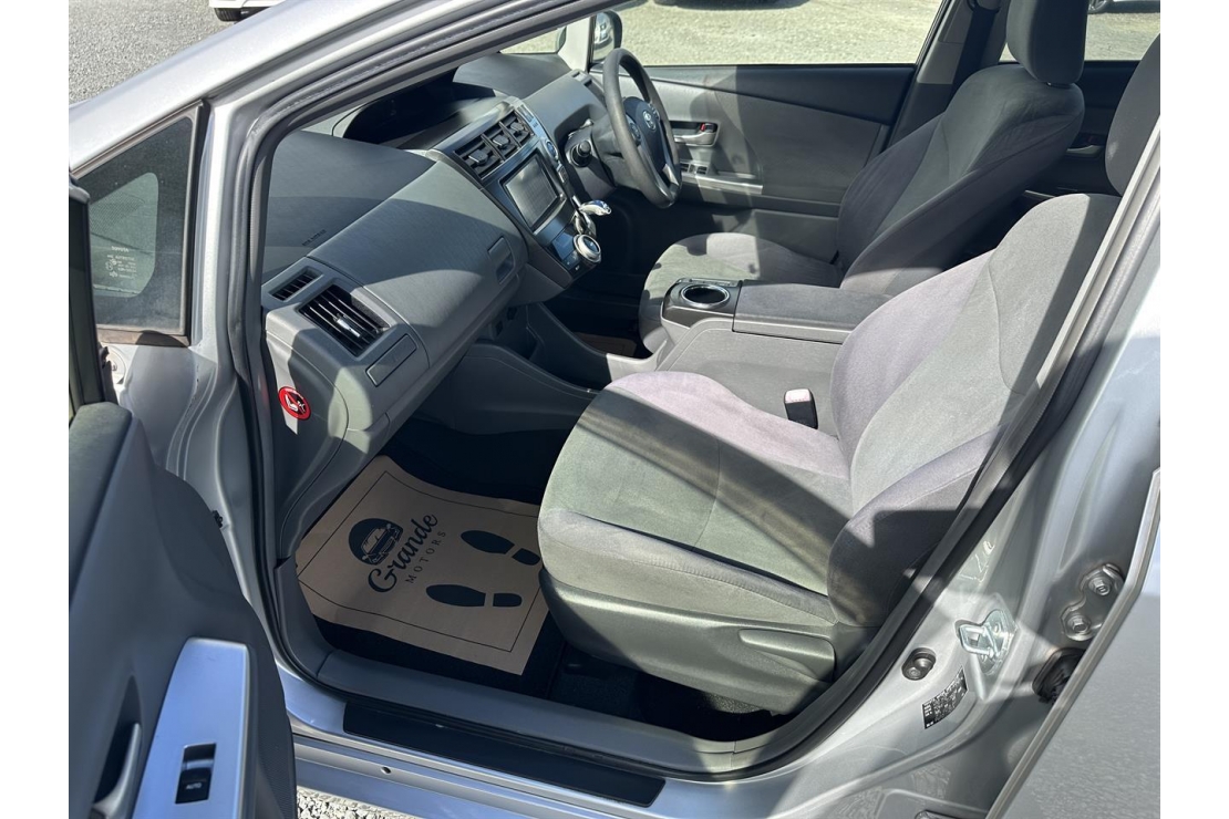 2012 Toyota Prius Alpha in silver colour with grey interior.