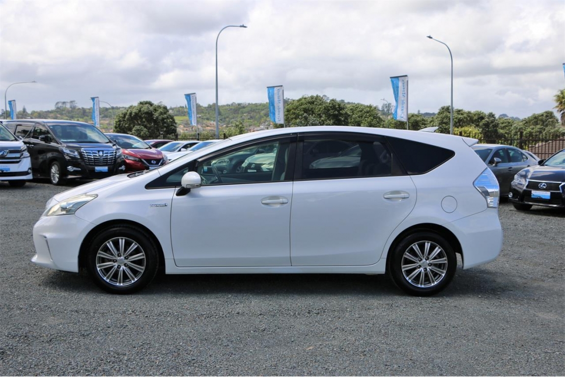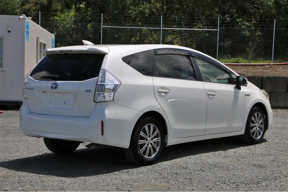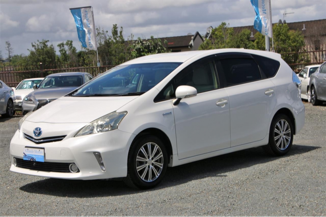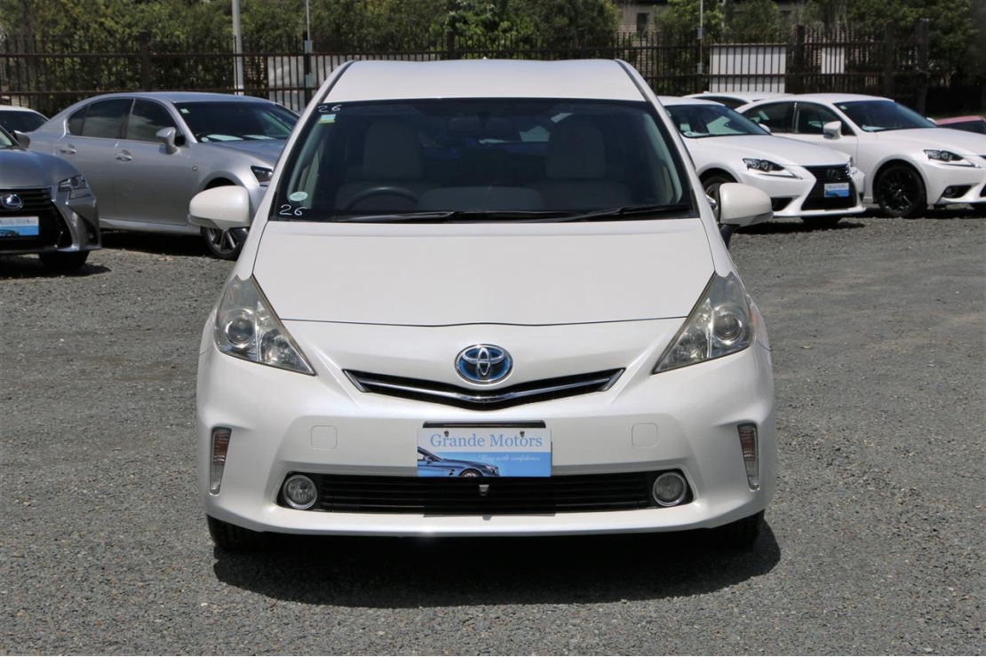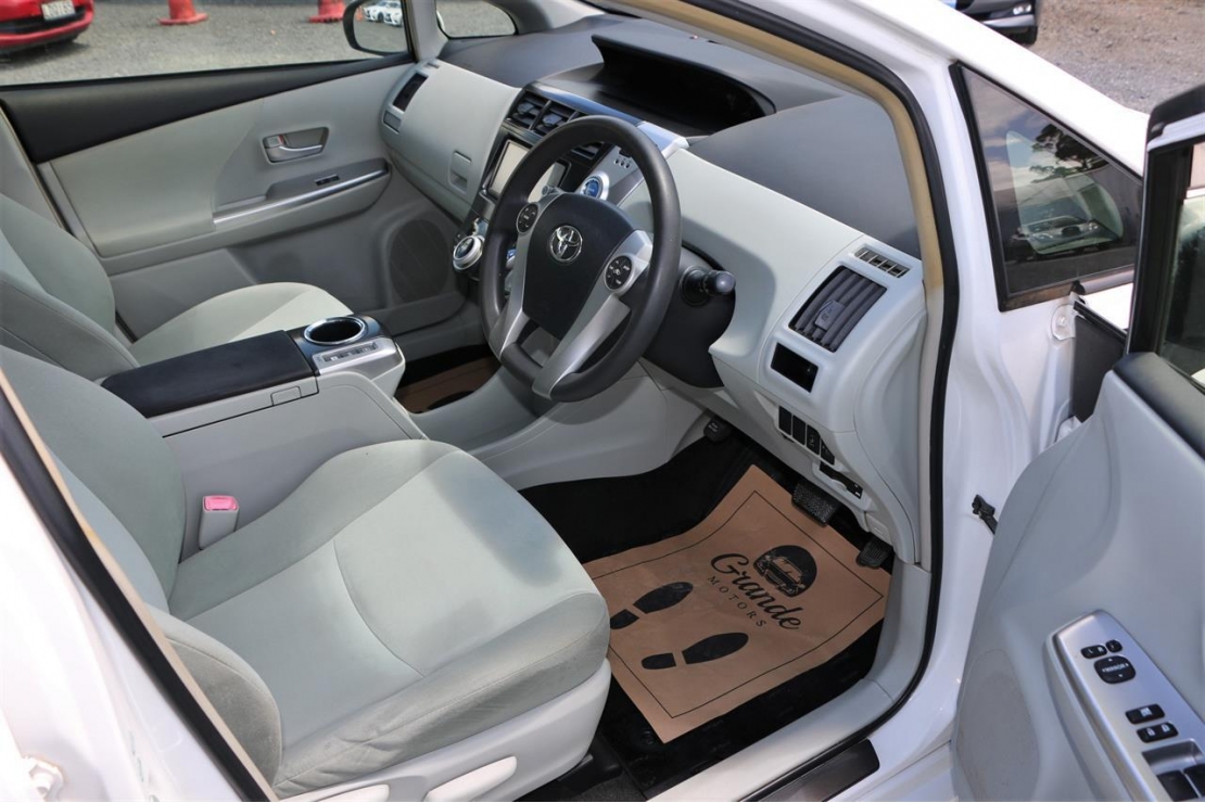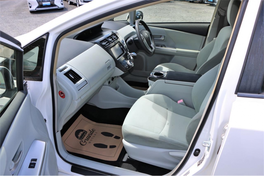 2014 Toyota Prius Alpha S package in Pearl White colour with grey interior.