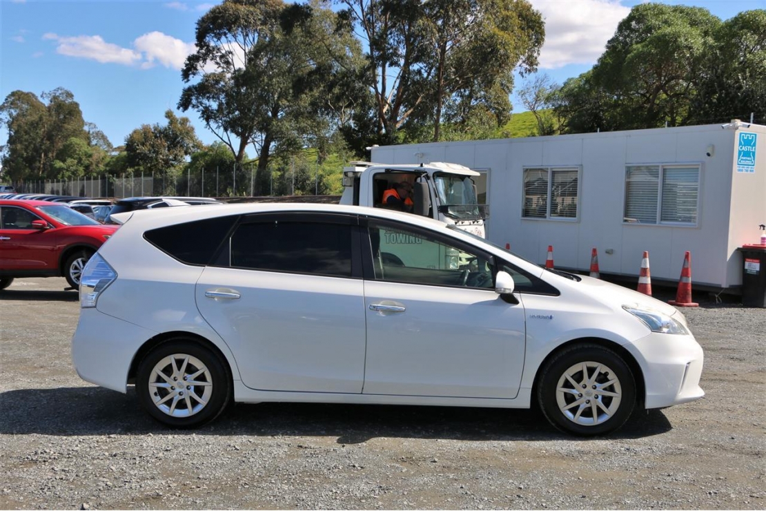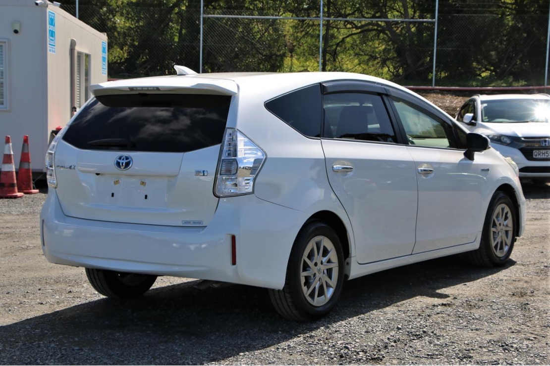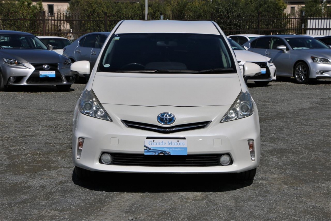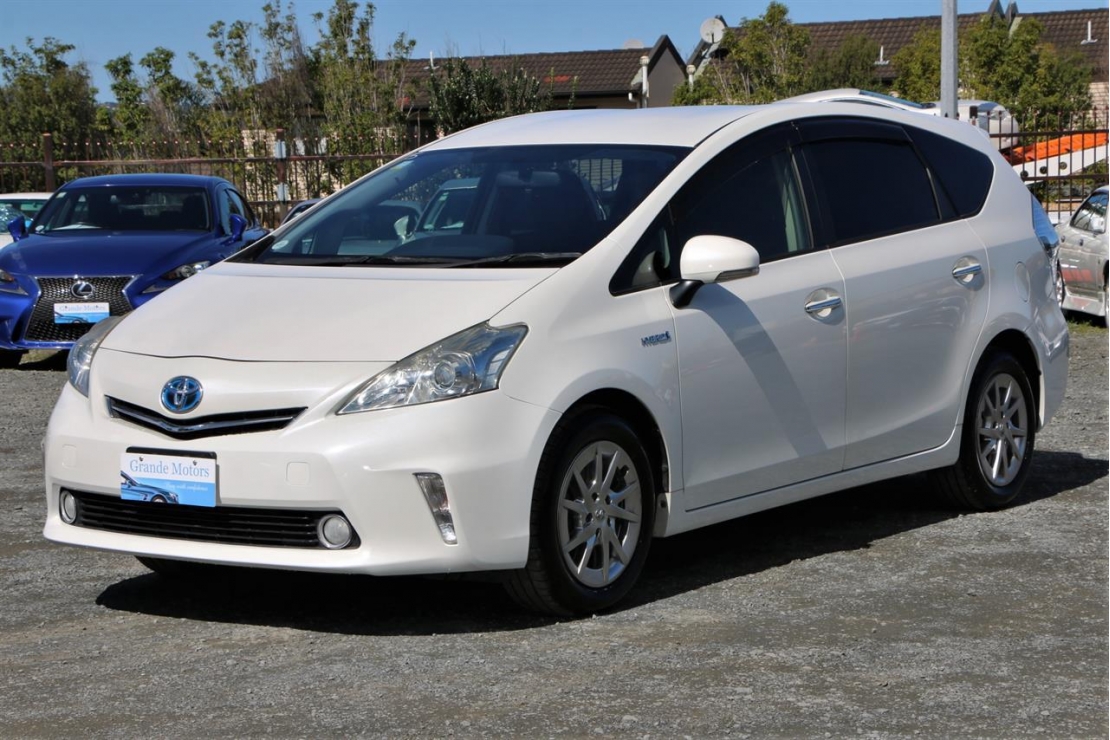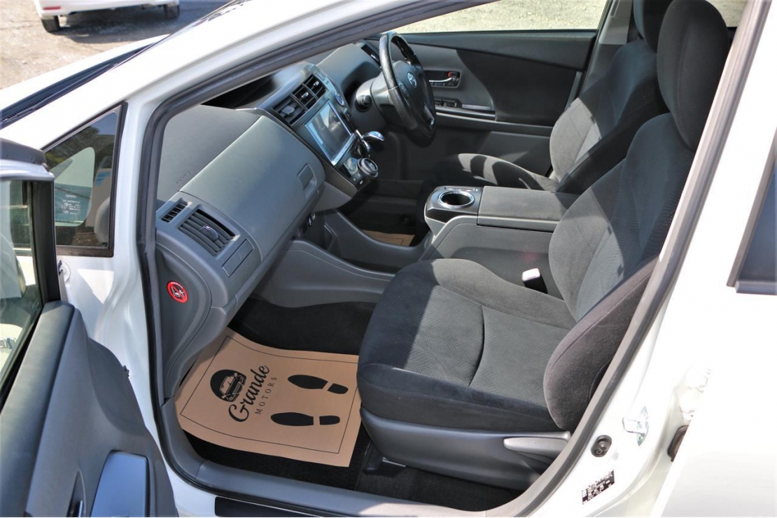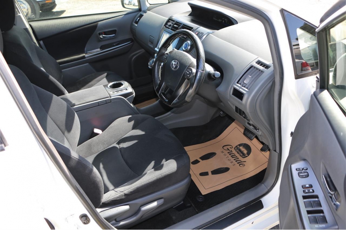 2014 Toyota Prius Alpha S package station wagon in Pearl White colour with grey interior.
