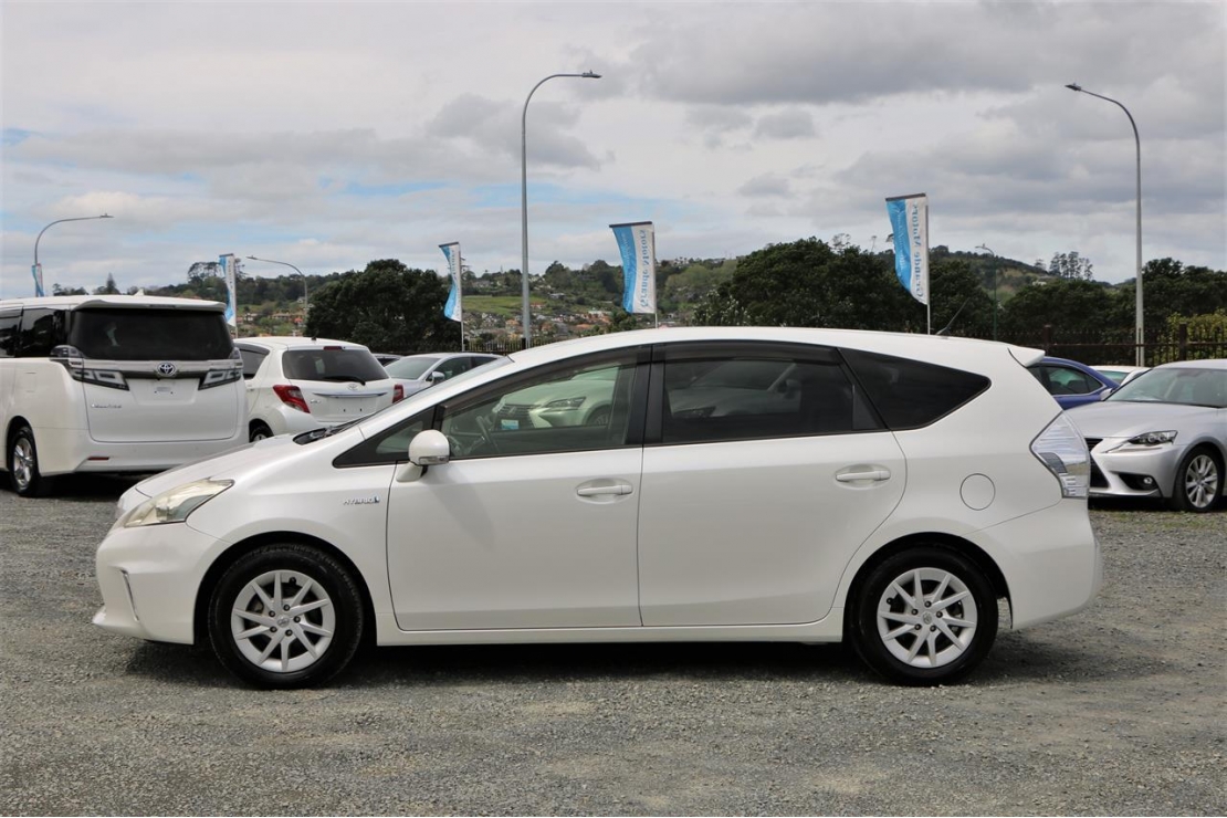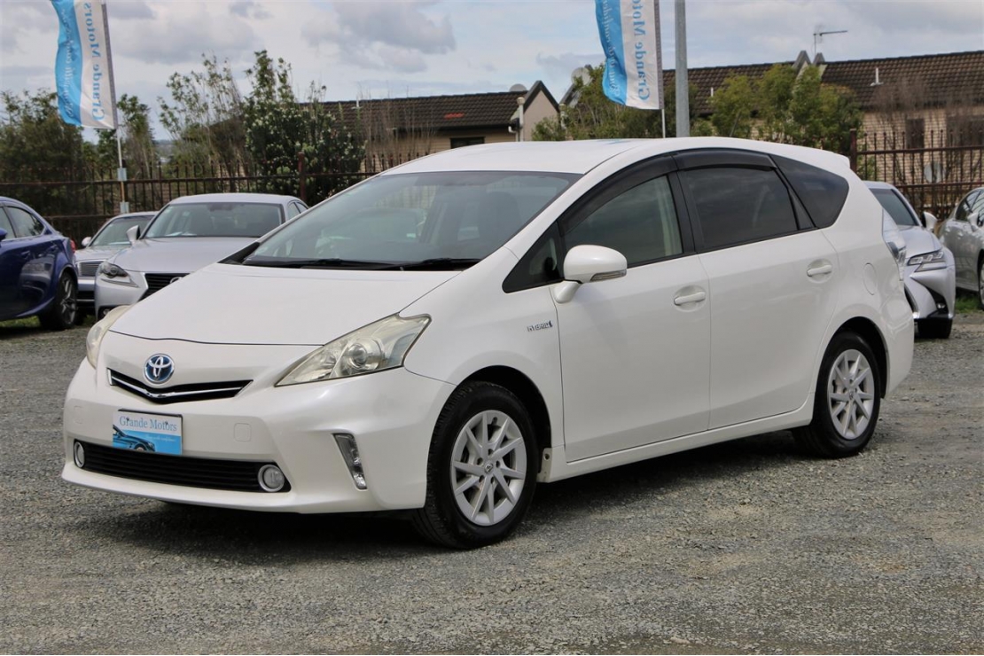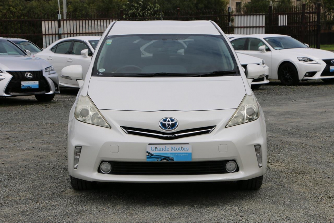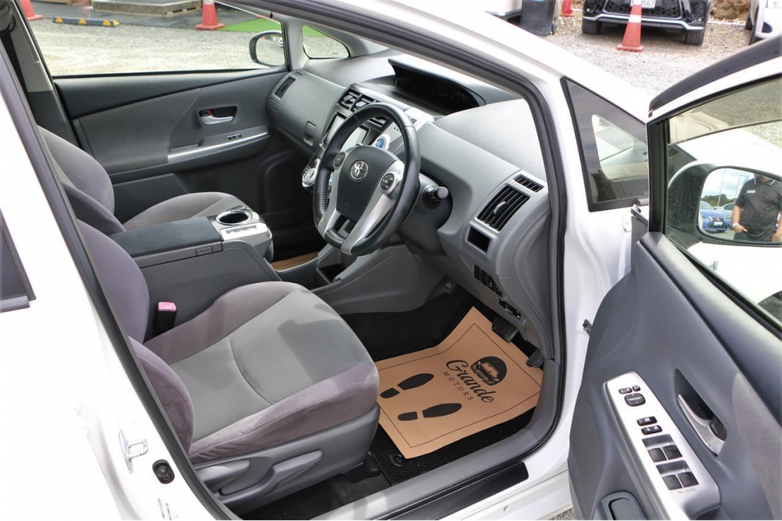 2012 Toyota Prius Alpha S package station wagon in Pearl White colour with grey interior.