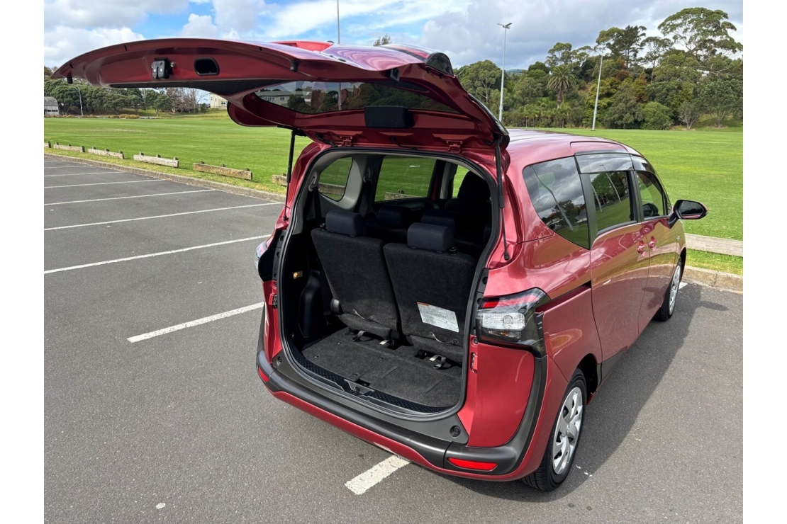 This 2016 Toyota Sienta Hybrid in metallic burgundy is a practical and economical 7 seater designed for family versatility and everyday driving. With tinted windows and monsoon shields, this Sienta offers a clean and functional design while being easy to drive and park. A super practical option for growing families or those needing flexible space.