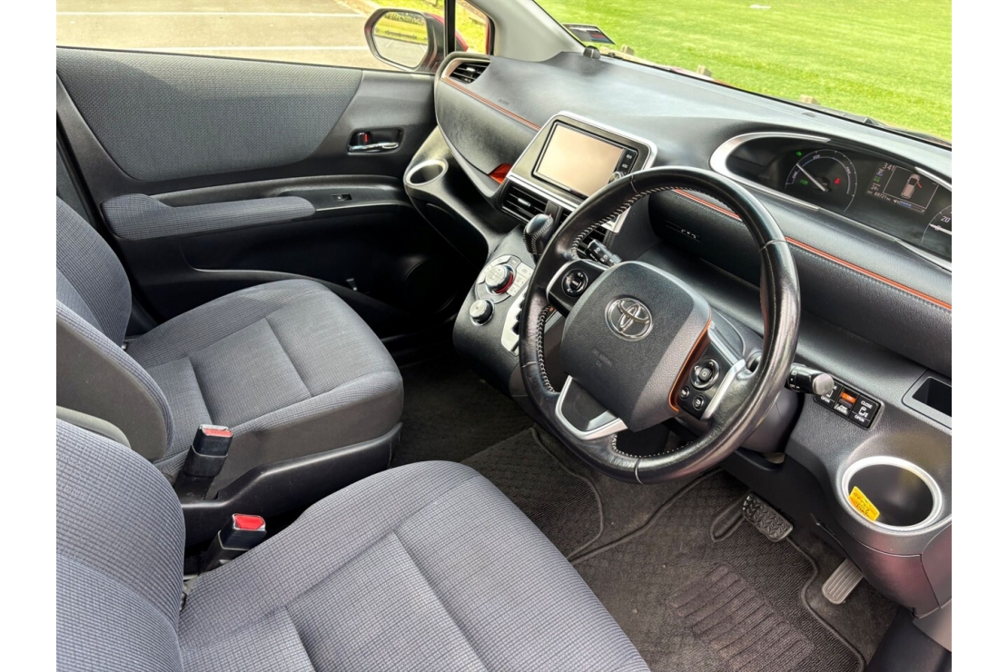 Powered by Toyota Hybrid Synergy Drive, this Sienta combines a petrol engine with electric assistance to deliver excellent fuel economy and smooth performance. EV mode allows for quiet electric driving at low speeds