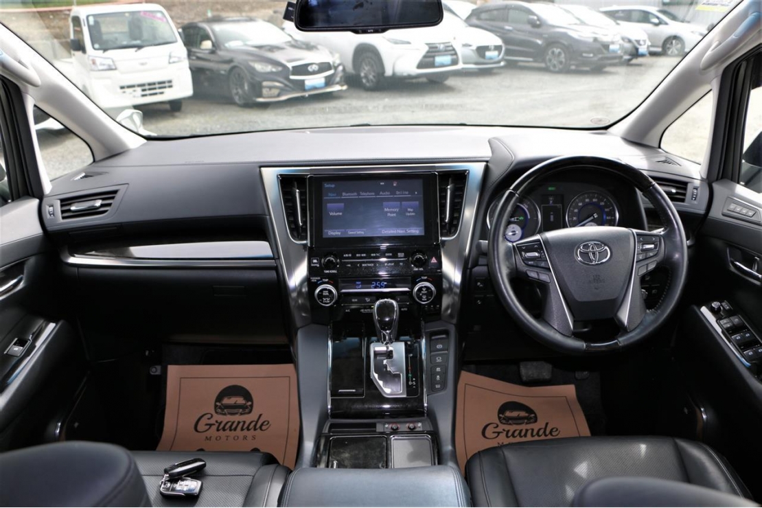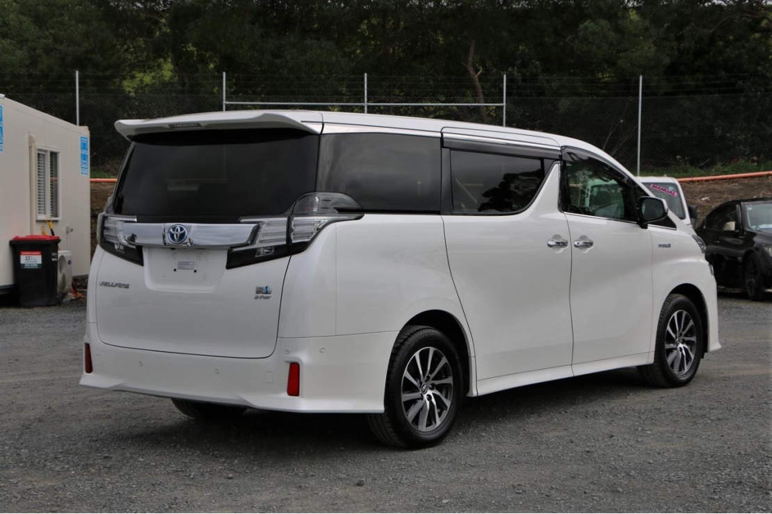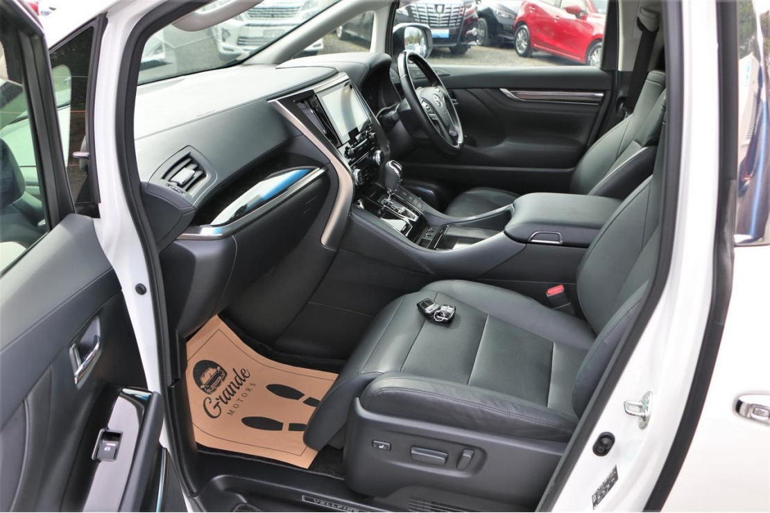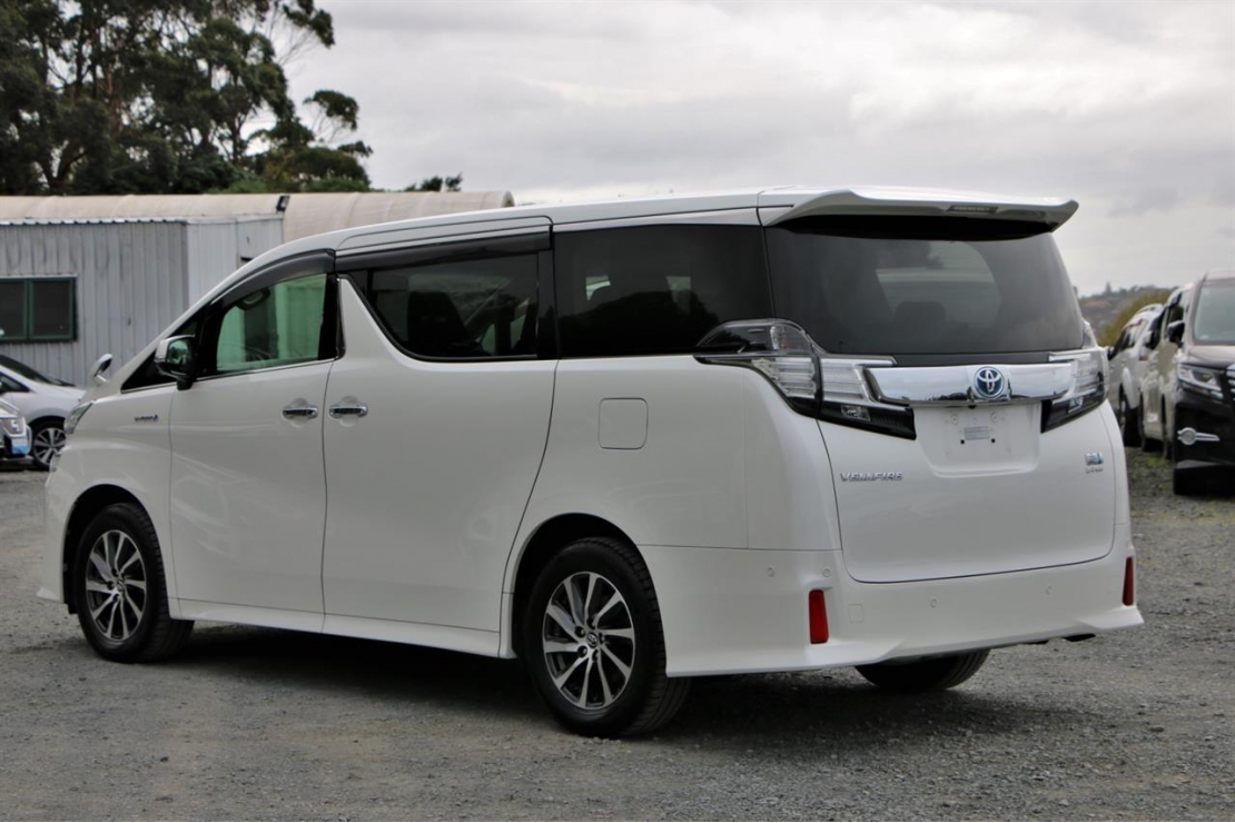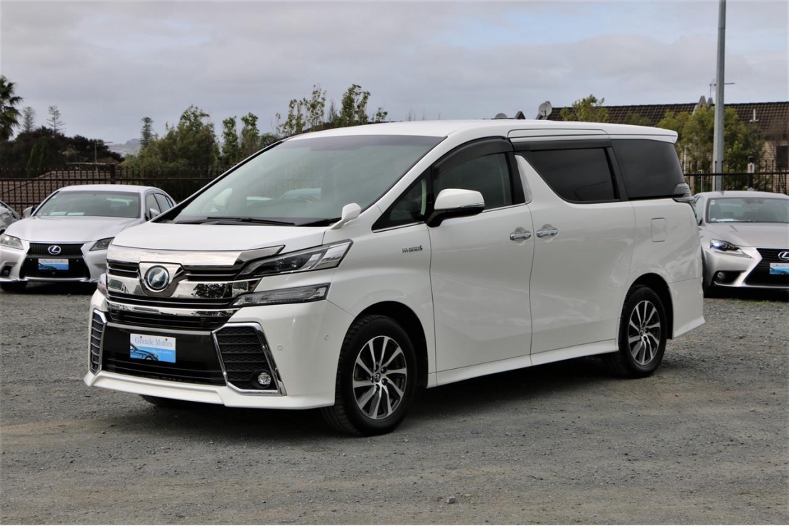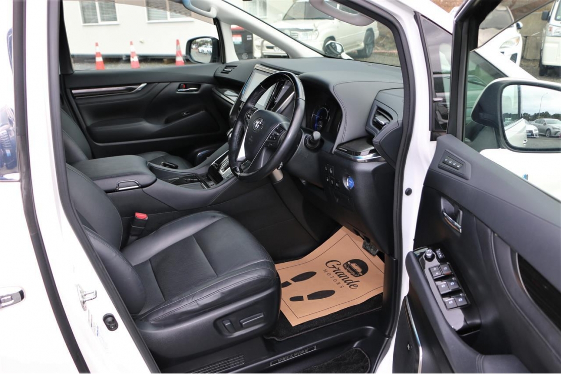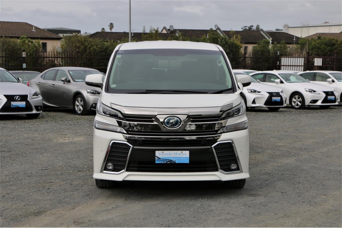 Top spec 2017 Toyota Vellfire ZR Gedition hybrid 7 seater in Pearl White colour with black leather seats.