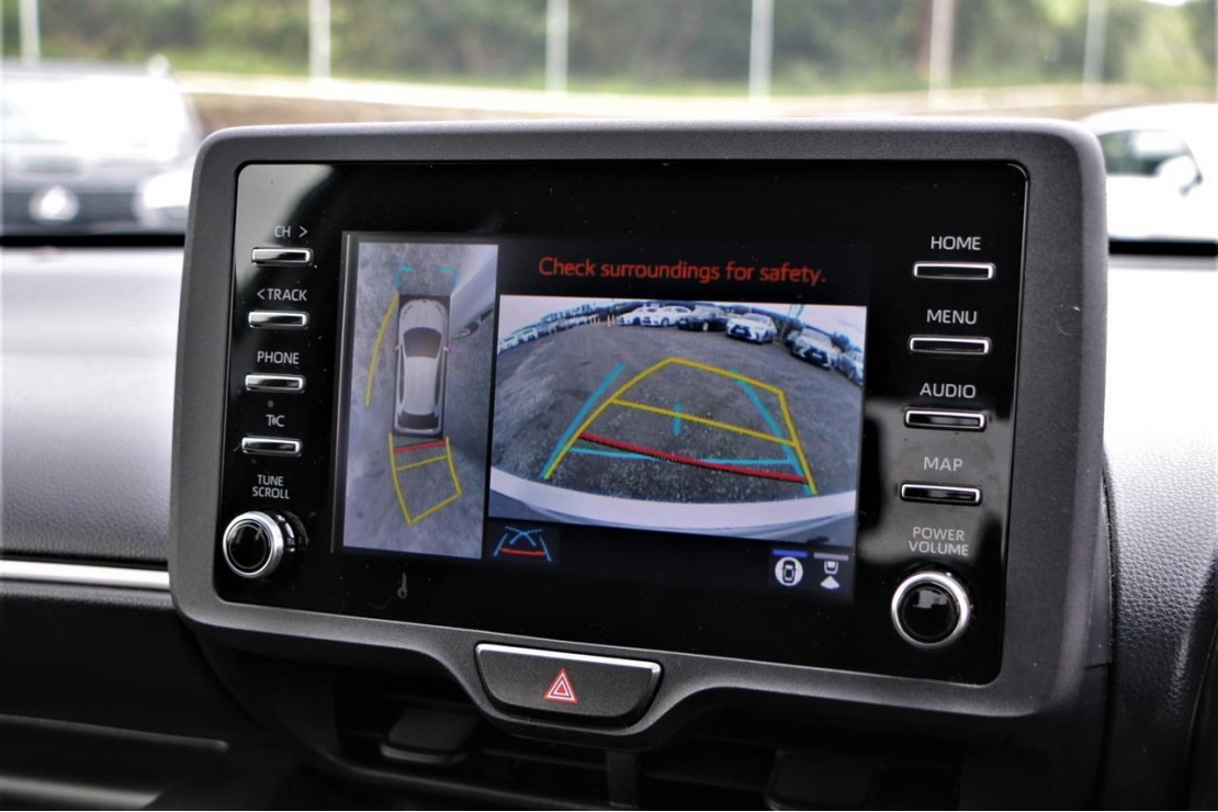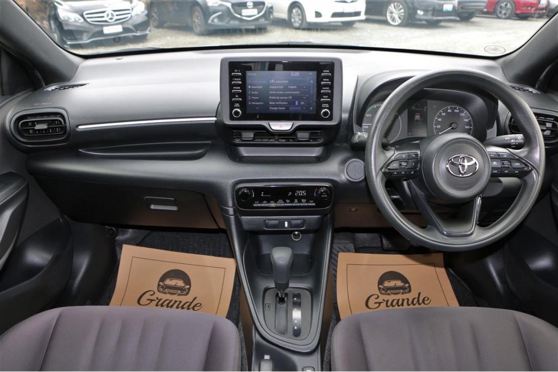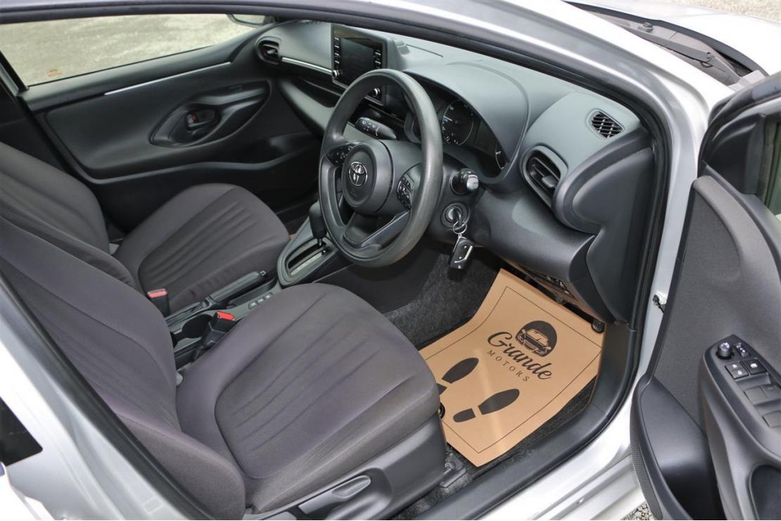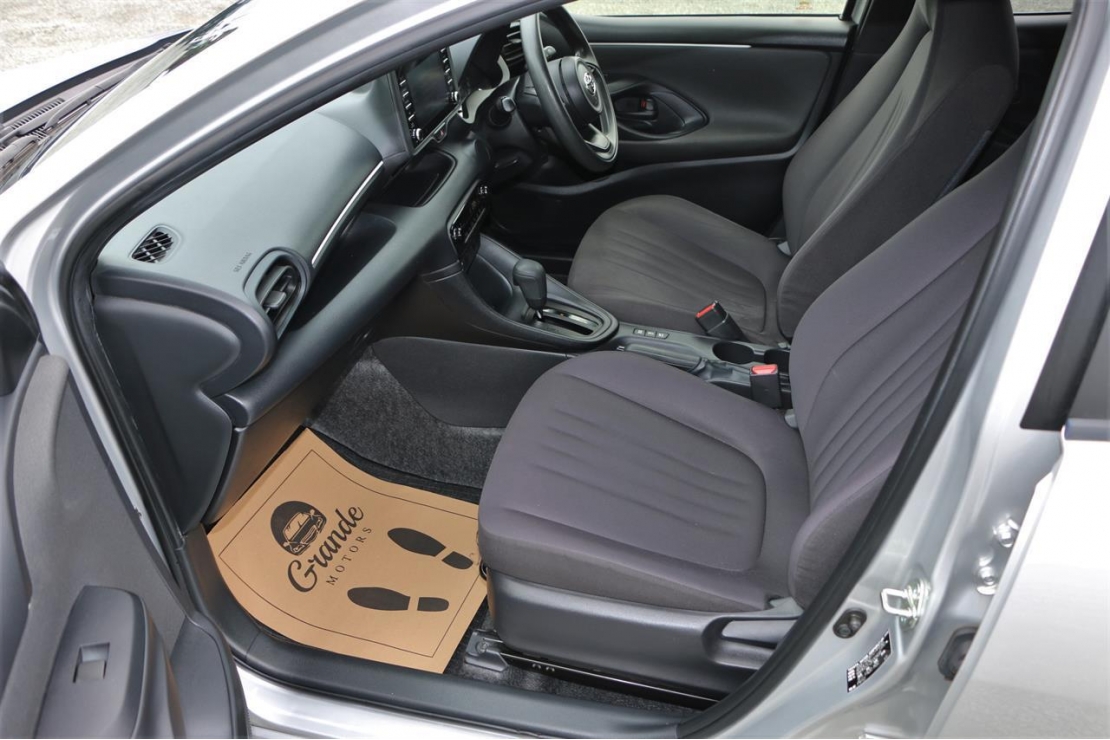 2020 Toyota Yaris hybrid in silver colour with black interior.