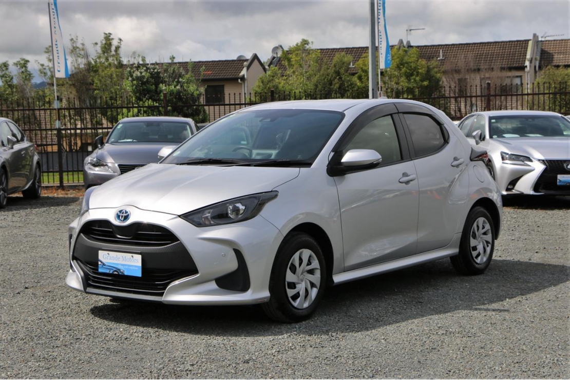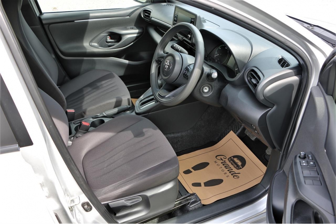 2020 Toyota Yaris hybrid in silver colour with black interior.