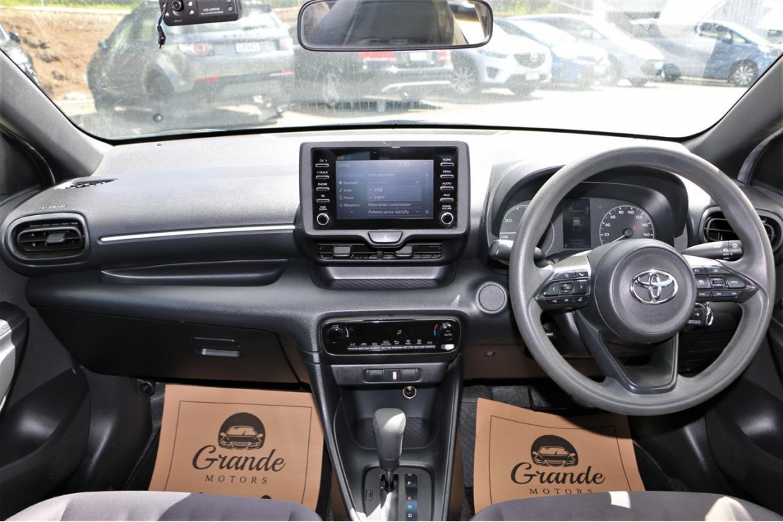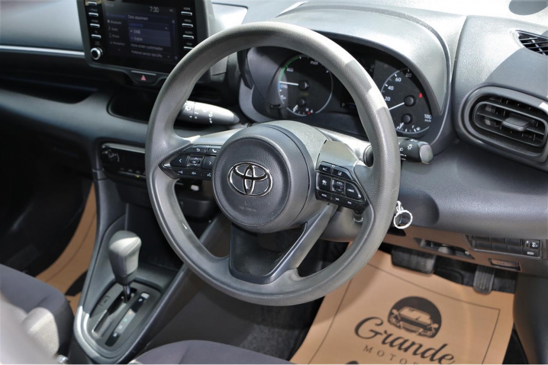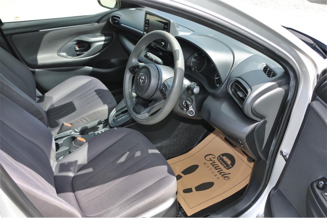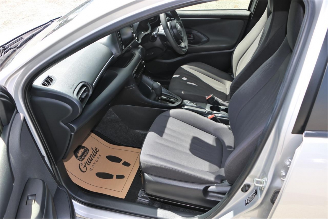 2020 Toyota Yaris hybrid in silver colour with black interior.