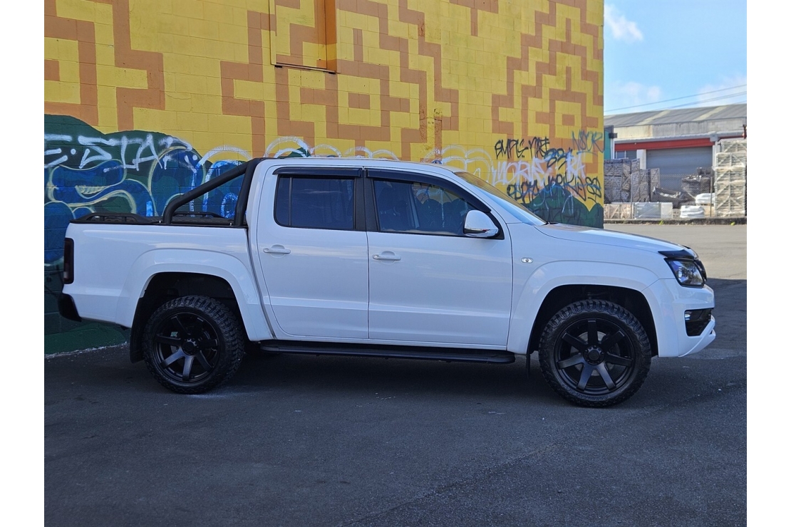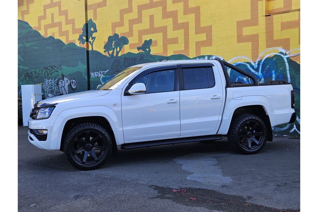 This NZ New Volkswagen Amarok Highline Finished in Candy White with a full custom blackout treatment, rear sports bars, and brand new 20-inch alloys with fresh tyres