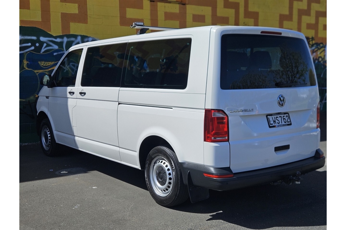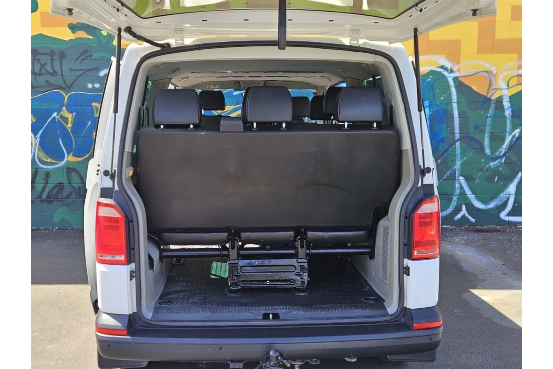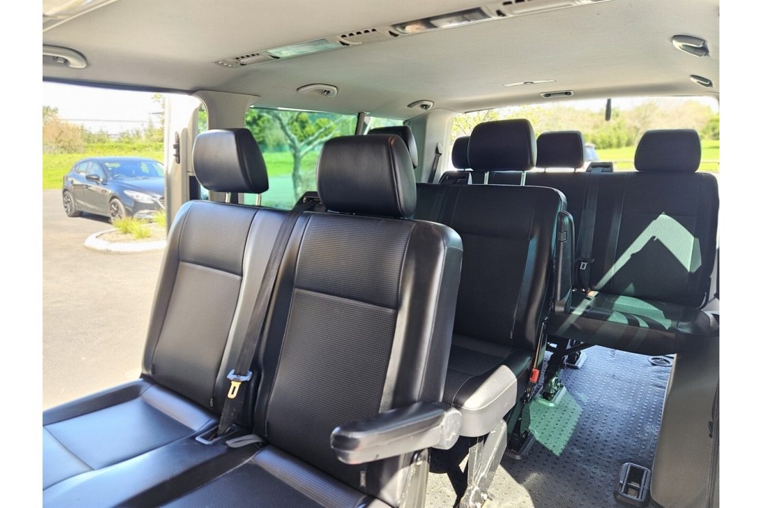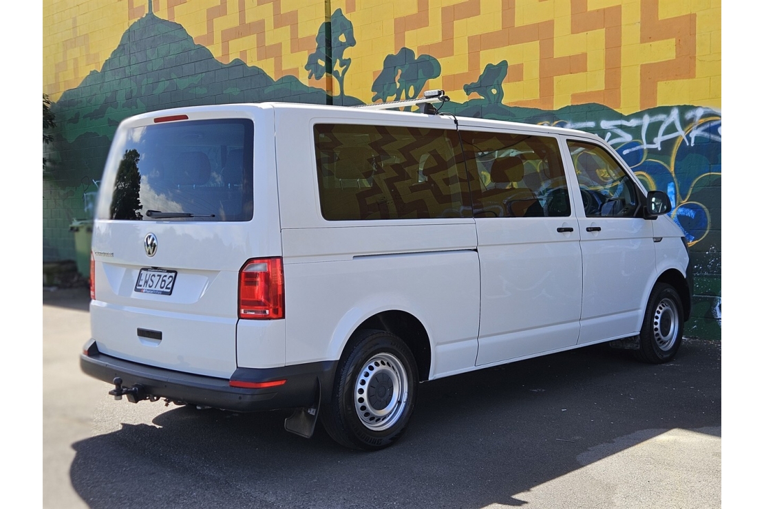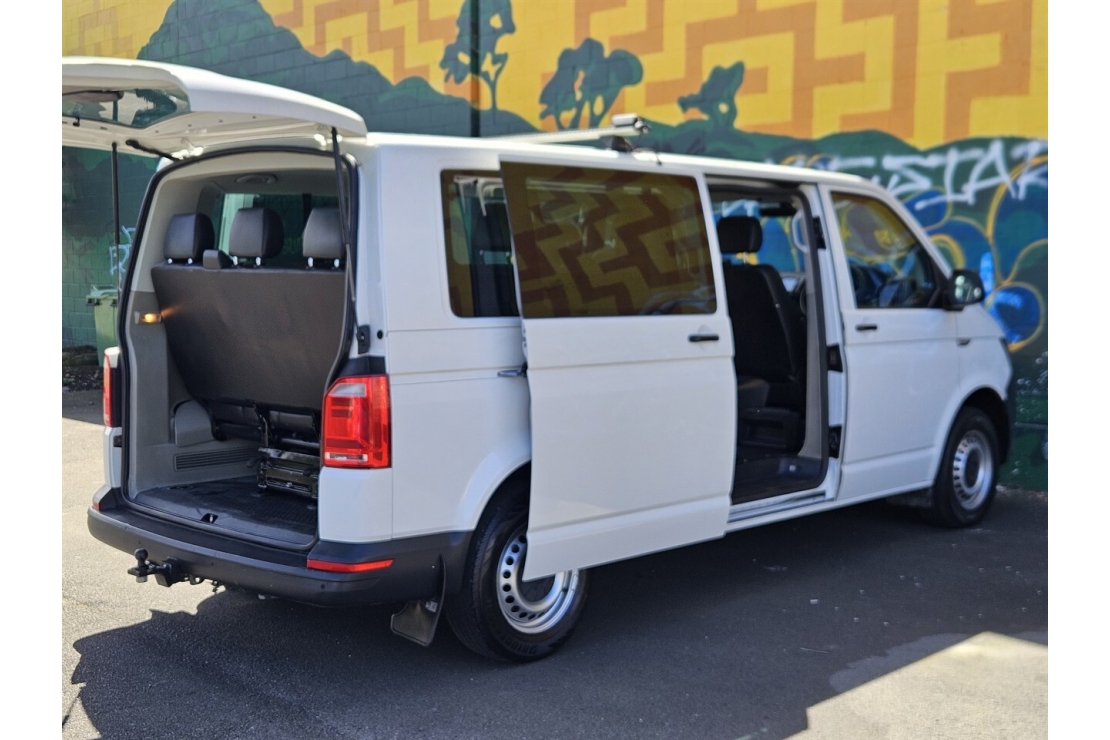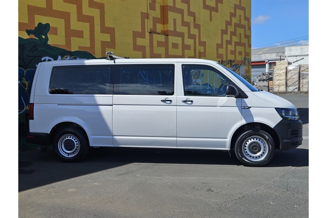 A premium 9-seater van designed for space, comfort, and versatility. This NZ New 2018 VW T6 Caravelle TL is finished in Candy White with full black leather interior, Powered by a reliable 2.0L turbo diesel engine with a smooth DSG dual-clutch automatic transmission, it delivers efficient performance for long trips, family transport, or executive shuttle use.