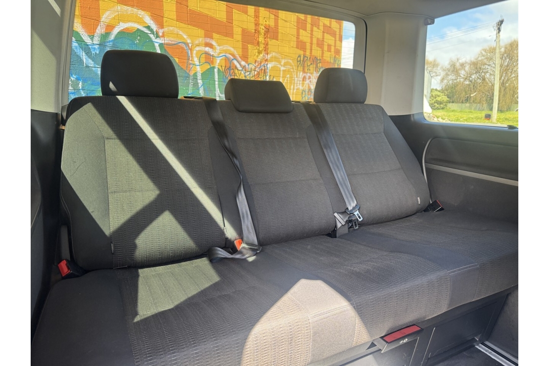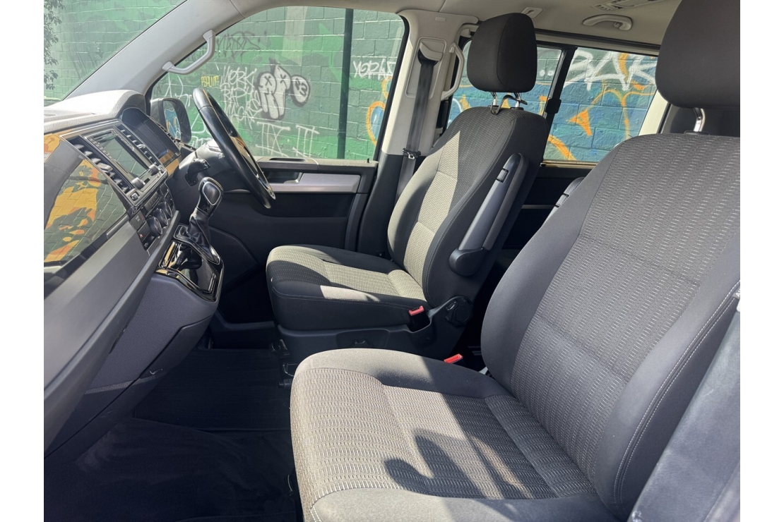 Inside, the Multivan impresses with a full black interior, two movable swivel seats with armrests in the second row, ISOFIX mounts, and a recirculation headliner with integrated vents for passenger comf... Read more