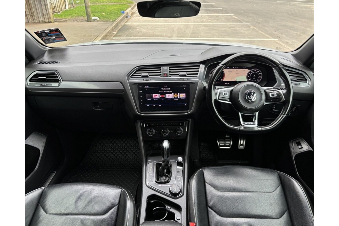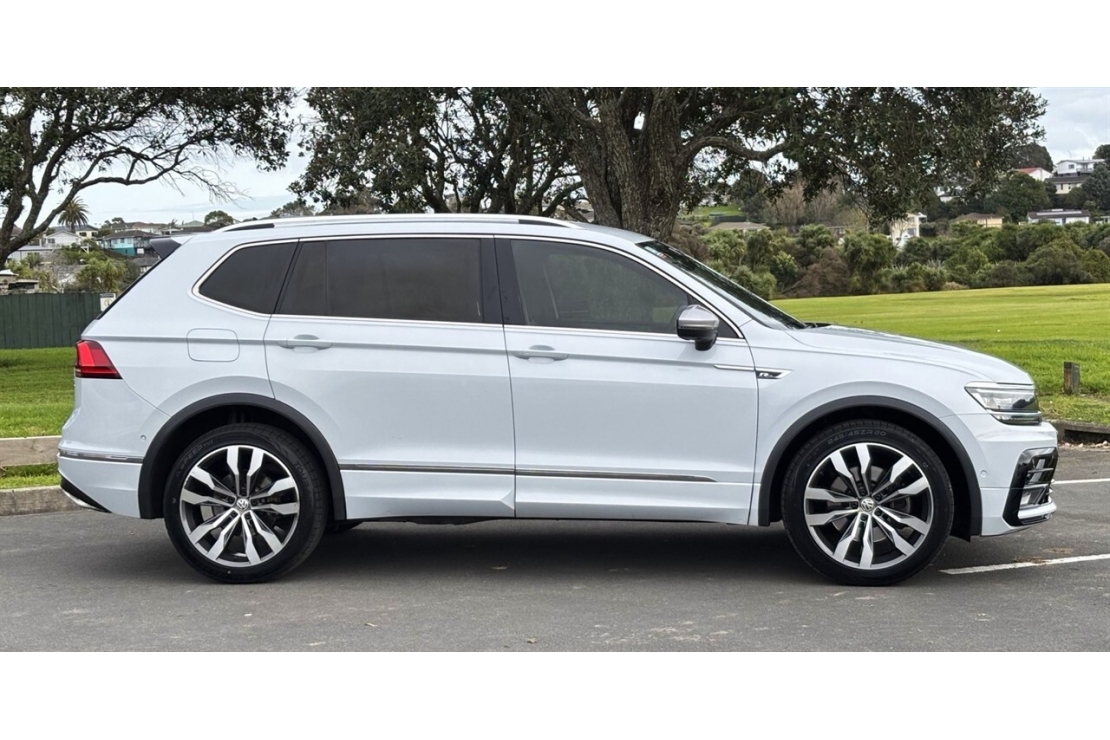 This NZ New 2019 VW Tiguan Allspace R-Line Bi-Turbo TDI 4Motion blends performance, space, and premium features into one powerful 7-seater SUV. Finished in Metallic White Silver over Titanium Black Vienna leather with embossed R-Line logos, it delivers style and practicality backed by VWs renowned bi-turbo diesel power and 4Motion AWD.
