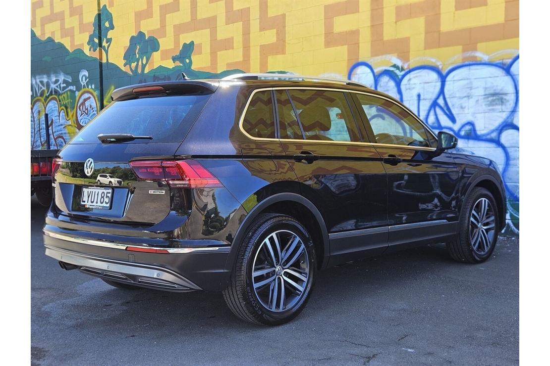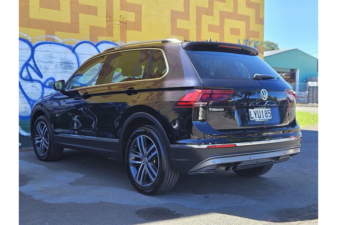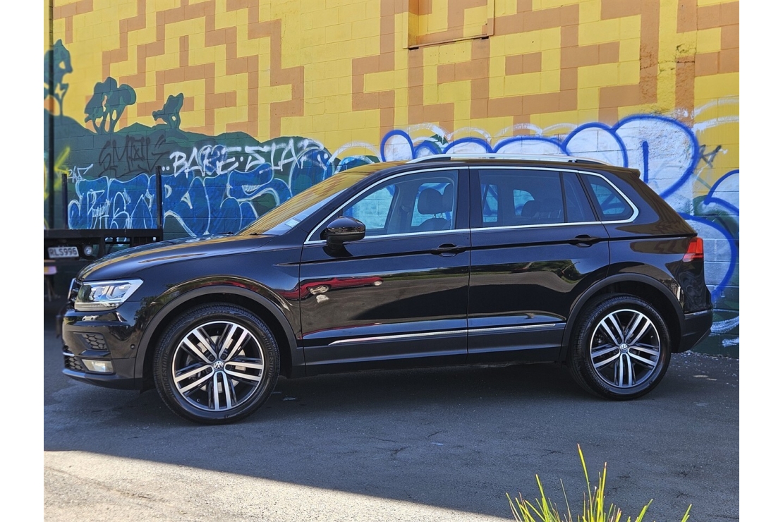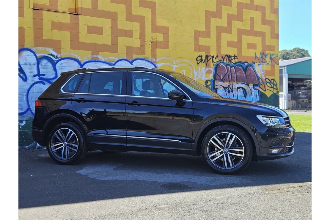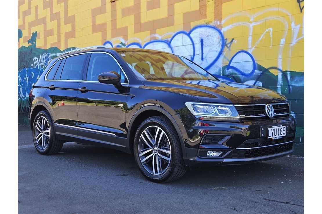 This NZ New 2019 VW Tiguan Highline is a luxury 7seat capable SUV with premium features, a powerful 2.0 litre turbo engine and full 4Motion all wheel drive. Finished in stunning pearlescent deep black with tinted windows and stylish 19 inch alloys