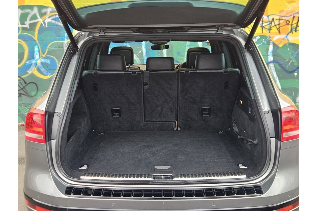 A rare and powerful SUV, this NZ New 2018 VW Touareg R-Line comes finished in striking Metallic Canyon Grey with a full custom blackout and bold 21" alloys for a commanding look. Under the bonnet sits the mighty 4.2L V8 turbo diesel producing 250kW, paired with an automatic transmission and legendary VW 4Motion system.