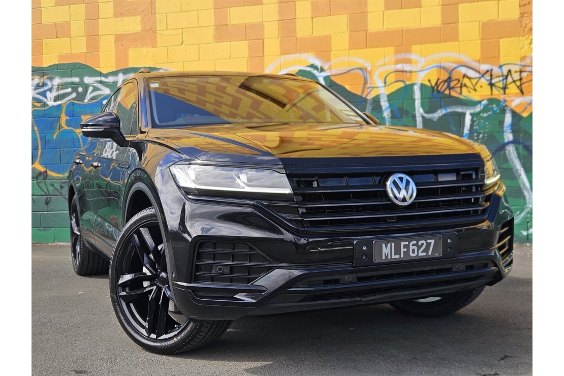The 2019 VW Touareg is a statement SUV combining power, refinement, and advanced technology. Powered by a smooth 3.0L V6 turbo diesel producing 170kW, paired with an 8-speed auto and 4WD system, it delivers confident performance whether cruising city streets or towing. Finished in Pearlescent Deep Black with full blackout and bold 22" alloys.